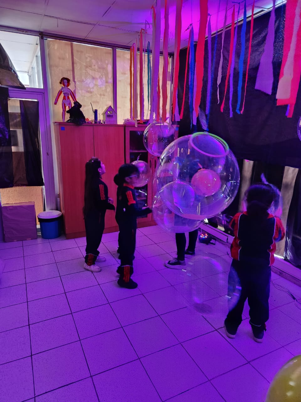 El 20 de Mayo nuestro equipo de integración a cargo de la Educadora Diferencial Belén Molina adecuaron nuestro laboratorio de ciencias como una sala sensorial, en donde estudiantes de 1º ciclo y estudiantes con necesidades especiales pudieron participar a travez del estimulo de las diferentes vías sensoriales: estimulación auditiva, visual, táctil, olfativa y gustativa, una estimulación de los cinco sentidos.